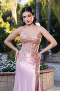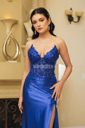Indulge in elegance with May Queen RQ8199 - a masterpiece of a gown boasting a peaked V-neck, strapless design, and corseted sheer bodice. This exquisite sheath dress flows into a vibrant floor-length skirt with a daring thigh-high slit. Perfect for formal occasions and galas, the May Queen RQ8199 is a graceful and poised addition to your wardrobe, exuding luxury and sophistication for any special event.