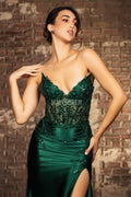 | Details: | Strapless, Sheer Beaded Bodice, Embroidery, High Slit |