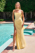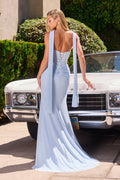 Step into the spotlight in the Ladivine CD388, a strapless masterpiece designed to turn heads at your most important moments. This stunning gown features a sheer illusion corset bodice adorned with sparkling rhinestone beading that catches every light. The fitted silhouette hugs your curves beautifully, while the dramatic thigh-high slit and flowing scarf add movement and elegance. With its lace-up back, corset boning, and floor-length train, this gown delivers the glamour and confidence you deserve for prom, galas, pageants, or any formal occasion. Available in six gorgeous colors and sizes 0-18.