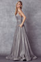 Look picture-perfect in this long sleeveless A-line corset style dress with fitted skirt and pockets by Juliet 223 The fashion-forward illusion deep-neck along with the open back design will make an elegant statement. This coreset style dress is finished with a lace up back and zipper closure.