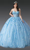 Step into the spotlight in this enchanting quinceanera gown featuring delicate lace embroidery, a figure-flattering corset bodice, charming floral accents, and adorable puff sleeves that add a touch of whimsy to your special celebration!