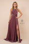 Be the center of attention in this embellished long high halter trumpet dress with open back by Nox Anabel T260.