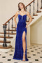 Command attention with this long sleeveless deep V-neck dress adorned in sequins, featuring a fitted skirt with an alluring slit. This impactful ensemble is crafted by Adora Design, designated as style number 3113.