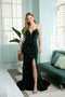 - Floor length fitted trumpet skirt with side leg slit and sweep train