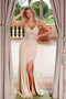 Shine bright like a diamond in this sequin-embellished strapless gown with a fitted slit skirt by Nox Anabel C1630. Our luxurious dress, crafted from stretch glitter satin, will make you feel like a glamorous and elegant queen. With its strapless design, boned waistline, and lace-up back, this enchanting gown is perfect for the modern bride who wants to radiate beauty and grace on her special day. Don't miss out on this opulent and sophisticated piece!