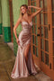 Nox Anabel C1625 Glitter Satin Corset Gown with Slit