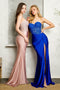 Fitted Glitter Sleeveless Corset Slit Gown by Juno M1031