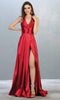 Exude sophistication in the May Queen MQ1666 evening gown. This sheath dress features spaghetti straps, a draping surplice bodice, and a high slit. The low open back adds an alluring touch. Elevate your style in this chic and glamorous design.