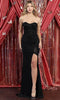 Sparkle like a star in the May Queen MQ1758 gown. Adorned with bejeweled soutache all over, this dress showcases a plunging V neckline with a deep sweetheart lining. The sheath silhouette and sweep train create a glamorous and captivating look. Make a lasting impression with this May Queen masterpiece.