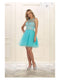 May Queen MQ1780: Enchant everyone with the gorgeous flair of this A-line dress. It showcases glitter details, spaghetti straps, lace appliques, and an illusion insert. The dress features a lace-up tie back and a full-length hemline. Look immensely chic in this May Queen masterpiece.