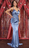 May Queen MQ1782: Embrace class and opulence in this lace-appliqued A-line dress featuring a V-neckline, sheer short sleeves, and a deep V-open back. Perfect for an elegant and sophisticated look.