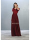 May Queen MQ1812: Look sophisticated and chic in this evening dress with beaded patterns on the fitted bodice. It has a plunging V-neckline with a sheer inset detail and pleated tulle skirt. The dress features a strappy open back and a back zipper closure. Capture the glamour with May Queen.