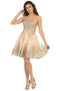 May Queen MQ1813: This dress features double spaghetti straps, an illusion bodice with beaded accents, a sheer mid-open back, a back zipper closure, and a short hemline. The dress has a short length, a V-neckline, and a natural waistline.