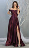 Look fabulous and turn heads at your event with the May Queen MQ1850 design. Adorned with floral embellishments throughout, this dress features a fitted bodice with a V-neckline in sheer fabric, complemented by long sleeves and a full back. The sheath skirt with a tulle overlay flows to a horsehair hemline and a classy sweep train. This May Queen dress is sure to make a lasting impression. Explore our collection of dresses for various themes, including bridal, bridesmaid, prom, homecoming, cocktail, formal, and semi-formal events. The models are wearing Black/Gold, Champagne/Gold, Dusty Blue, and Eggplant colors.