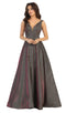 Radiate beauty and grace in the May Queen MQ1874 evening dress. It features a sequined surplice bodice, a thigh-high leg slit, and a sheath silhouette with a sweep train. Available in various colors.