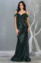 Turn heads in the elegant May Queen RQ7624 evening gown. It features sheer long sleeves, a deep scalloped V-neckline with a sheer inset at the mid-bust, and a fitted bodice adorned with lace appliques. A shiny belt accentuates the waist, and the open back adds a unique detail. The trumpet skirt flares at the bottom, creating a stunning silhouette, while the sweep train adds an extra touch of elegance. This May Queen design will surely showcase your elegant and classy style at your next formal occasion.