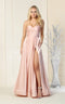 Sparkle and shine in the stunning May Queen RQ7794 dress. The entire gown is embellished with dazzling glitters, and it features a gathered bodice with a plunging V-neckline and short sleeves with slit accents. The skirt showcases a sheath silhouette that flows to a full-length hemline. This May Queen creation is a true definition of glamour.
