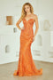Turn heads in this stunning metallic strapless gown from Amelia Couture 9076, designed to make you unforgettable. The illusion deep V-neck bodice and open back create an alluring silhouette, while intricate beading adds glamorous dimension. A fitted skirt with dramatic side slit and sweeping train offers movement and elegance for any formal occasion. Crafted from luxurious metallic knit with polyester lining and bra cup support, this floor-length masterpiece flatters every figure. Available in emerald green, magenta, and navy blue, sizes 0-14. Perfect for prom, galas, red carpet events, and black-tie celebrations.