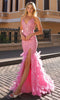 Indulge in the exquisite Nox Anabel C1461 gown with its stunning off-shoulder design. The sheer corset bodice, featuring a plunging V-neckline and subtle slit, exudes an alluring charm. You'll feel secure in the back zipper closure, while the floor-length skirt flows gracefully in a sheath silhouette. The striking feather details and daring slit add even more drama to this captivating ensemble. Make a statement at your next formal event with Nox Anabel C1461, a perfect blend of sophistication and allure. Available in Purple/Nude for a truly unforgettable look.
