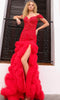 Step onto the red carpet and shine like a star in the Nox Anabel P1401 - Scoop Sequin Lace Prom Dress. Dazzling sequins cover the delicate lace fabric of this sleeveless dress, making you feel like a true enchantress. The scoop neckline is supported by spaghetti straps, leading to a corset lace-up back. With a sweeping train and high slit, this dress exudes movement and elegance, while the sheath silhouette perfectly highlights your curves. Embrace the beauty of the Nox Anabel P1401 design and be dressed to impress in Hot Pink, Lilac, or Ocean Blue.