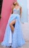 Indulge in elegance and allure all night long with this mesmerizing Nox Anabel R1299 prom dress. The ornate spaghetti straps and lace details, adorned with sequins, add a touch of enchantment as you grace the room. The sheer corset bodice, featuring a sweetheart neckline, sets a captivating tone for this ethereal masterpiece. The alluring v-open back and discreet zipper closure only add to the mystique. The A-line skirt cascades gracefully, with delicate scalloped tiers that exude grandeur. As you make your entrance, the sweeping train behind you radiates sophistication. Available in Blush, Light Blue, Navy Blue, Periwinkle, and Fuchsia, this timeless ensemble will elevate your presence to new heights.