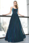 Be red carpet ready in this long sleeveless pleated metallic dress by Juliet 226. This dress has a illusion v-neck bodice with straps and zipper closure with a sweep train.