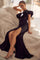- Floor length fitted skirt with sweep train and leg slit