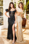 Look glamorous in Adora Design 3124's Slit Gown with its sequined cold shoulder detailing, feathered accents, and exquisite embroidered lace applique. This gown features a deep illusion V-neck bodice with corset boning and feather straps, a zipper closure at the open lace up back, and a floor-length fitted skirt with a sweep train and side leg slit. Available in Black, Red, and Light Blue, sizes X-Small to 2X-Large, this dress is perfect for Prom, Red Carpet, Wedding Guests, and other formal occasions.