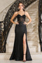 Introducing the irresistible Adora Design 3203 - a long, strapless dress with a fitted mermaid skirt that sparkles with sequin print. This sheer dress is sure to turn heads, and comes in Emerald Green, Royal Blue, Fuchsia Pink, and Black.