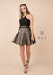 Be the center of attention in this short black cocktail dress with floral print skirt by Nox Anabel Q606. This short party dress features a black high-neck sleeveless bodice with an enticing illusion panels on the sides, flirty open back, a short box pleated A-line skirt is decorated with a vibrant floral print and gracefully flares out above the knees, and a zipper closure. Affordably priced under $150, this dress is perfect for any semi-formal event and will keep you on budget!