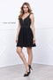 Look feminine and chic in this two-piece lace long-sleeved lace cocktail dress by Nox Anabel Style Number 6268. This short party dress features a long-sleeved sheer lace crop top accented with beads, jewel embellished waistband, open cutout back, short lace...