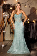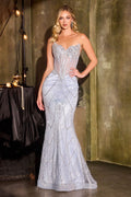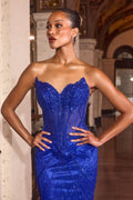 Make a statement in this stunning Ladivine J888 mermaid gown that commands attention from every angle. Featuring an elegant strapless sweetheart neckline with intricate beadwork and sequin detailing, the sculpted bodice transitions into a sleek, figure-hugging trumpet skirt that elongates your silhouette. The corset-boned back with lace-up closure and sheer side panels creates an alluring, secure fit, while the floor-length train adds dramatic flair. Crafted from luxurious tulle with full beading throughout, this show-stopping dress is your ultimate choice for prom, galas, red-carpet moments, and formal celebrations. Available in eight captivating colors and sizes 0-16.