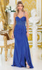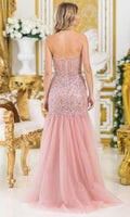 Elevate your eveningwear with Dancing Queen 4468, a timeless masterpiece. The strapless gown beaded bodice is detailed with exquisite hand-sewn sequin embellishments that shimmer under the lights. A trumpet skirt flares gently from mid-thigh, giving it a classic yet contemporary finish. The fitted bodice highlights the waistline beautifully, while the deep V-neckline adds a romantic touch. Dancing Queen 4468 is designed for women who want to exude elegance and make a sophisticated impression. Models are wearing Rose Gold, Royal Blue, and Silver colors.