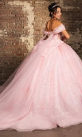 Imagine stepping into a room with undeniable elegance—the May Queen LK273 makes that moment unforgettable. This stunning ballgown features an off-shoulder design with a sweetheart neckline that flatters and captivates. The intricately embellished corset bodice showcases shimmering sequins, delicate beading, and dimensional floral details that catch light beautifully. The voluminous skirt flows into a dramatic silhouette, anchored by a striking Watteau train and oversized back bow that ensures all eyes remain on you. Whether you're attending a gala, pageant, or milestone celebration, this gown delivers the sophistication and grandeur your special occasion deserves. Available in Dustyblue and Pink.