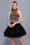 Look elegant in this short sleeveless cocktail dress with white floral embroidery by Nox Anabel Style Number 6040 for your upcoming formal event. This short cocktail dress features a high-neck sleeveless bodice, sheer illusion neckline, beautiful white floral embroidery, short ruffled tulle skirt, and a zipper closure.