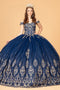 Be the life of the party with this 3D Off Shoulder Floral Ball Gown by Elizabeth K GL3102. The A-line skirt and sparkly gold embroidery perfectly compliment the sage color for a truly special occasion ensemble.