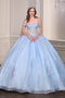Make a stunning entrance in this Ladivine 15732 ball gown, where timeless elegance meets modern glamour. The strapless sweetheart bodice features intricate beading and sequin work that catches light with every movement, while the structured corset back provides confident support throughout your event. Cascading layers of embellished tulle create a dramatic silhouette, enhanced by delicate lace appliqué and a show-stopping bow detail. The floor-length A-line skirt flows beautifully with an elegant train, perfect for quinceañeras, pageants, galas, and unforgettable celebrations. Available in pink and blue across all sizes, this gown transforms you into the vision you've always imagined.