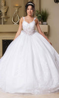 Make it a night to remember with this May Queen LK269 ballgown. All will be enthralled with your presence as you show up in this captivating dress which showcases a classy V-neckline on a sleeveless illusion top, also exhibiting lace designs as well as floral appliques. Its back reveals a mid-open design that is enclosed with lace for a sophisticated finish. Making it even more alluring is the back bow and the grand cathedral train. Get ready for everyone to stop and stare when you show up in this May Queen LK269 masterpiece. Model is wearing Ivory color.