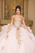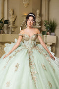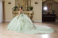 With a breathtaking design, the May Queen LK272 is a vision of elegance and charm. This ballgown showcases a sheer corset bodice, elegantly adorned with intricate lace appliques, delicate beadwork, and shimmering sequins. The back of this gown captivates with its lace-up closure, voluminous layered ruffles, and a flowing chapel train. Perfect for quinceaneras or any grand occasions, the May Queen LK272 brings your dream gown to life with its romantic floral pattern and exquisite beaded detailing. Models are wearing Blush, and Sage colors.