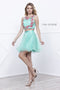 - High halter neckline with a heavily beaded top