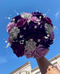 Handcrafted quinceañera bouquet featuring roses in baby pink, fuchsia, and ivory. Adorned with silver brooches. Please note that brooch styles may vary depending on availability.