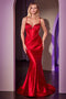 Skirt: Floor-length fitted skirt with a dramatic sweep train, enhancing the gown's sophistication