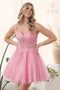 Bead Applique Short Deep V-Neck Dress by Nox Anabel G786