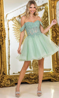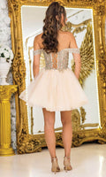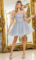 Charm meets sophistication with this stunning creation, the Dancing Queen 3418. The romantic off-shoulder design paired with a shimmering beaded and floral embroidered bodice creates a show-stopping look. A playful layered tulle skirt and lace-up back add personality and versatility, making it ideal for fun events. This A-line dress flatters the figure effortlessly while ensuring you stand out in every crowd. Step into your next event with the confidence and beauty of the Dancing Queen 3418. Models are wearing Champagne, Lilac, Off White, Sage, and Silver colors.