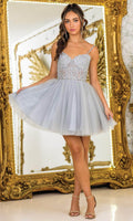 This Dancing Queen 3399 brings effortless glamour to your next special occasion. Designed with a dazzling glitter sequin bodice and structured illusion corset waist, this dress radiates contemporary elegance. Thin spaghetti straps and a sweetheart neckline enhance the bodice, while a flouncy tulle skirt offers soft volume and playful energy. Whether you are dancing at a semi-formal or making an entrance at a celebration, this Dancing Queen 3399 short dress captures the perfect balance of fun and sophistication. Models are wearing Gold, and Silver colors.