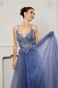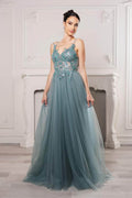 Radiate ethereal beauty in a May Queen MQ2167 gown that feels like a dream. The ensemble highlights a sheer illusion bodice decorated with floral lace applique and shimmering sequins. Spaghetti straps and a delicate deep V-neckline elevate the romantic design, while the full tulle skirt adds a soft and airy finish to the A-line silhouette. The May Queen MQ2167 is the perfect pick for proms, weddings, or formal evenings where elegance is key. Models are wearing Dustyblue, Ivory, Rosegold, and Sage colors.