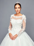 Modest Wedding Dresses | Bridal Gown by 469 offers gracefully regal style with its floor-length A-line ball gown silhouette and full-length sleeves for modest charm. A structured bodice flatters the figure, while the voluminous skirt flows with elegance, ideal for formal, church, or seasonal weddings. Available in bridal white, ivory, and inclusive sizing, this gown blends timeless tradition with refined sophistication for a stunning bridal look.