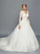 Modest Wedding Dresses | Bridal Gown by 457 is effortlessly romantic, featuring a scalloped V-neckline and graceful long sleeves for timeless appeal. The elegant silhouette enhances the upper body with refined detail while offering comfortable, modest coverage. A soft, flowing skirt brings movement and charm, perfect for brides who appreciate classic elegance with modern grace. Ideal for fall weddings or formal church settings, this ivory gown exudes poise and sophistication.